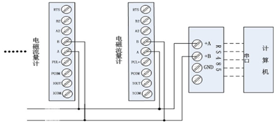 手操器與電磁流量計連接如下圖所示: