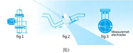 (1)測(cè)量管必須保持滿管,安裝的位置*好選在低點(diǎn)。*理想的位置(如圖1所示),流體由低往高流,或者(如圖3所示)安裝。