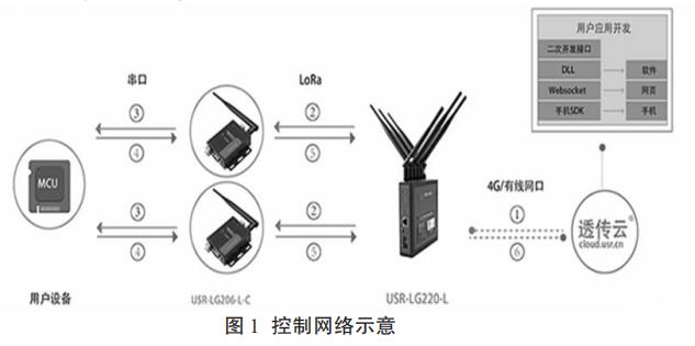 基于 LoRa 技術(shù)的無線流量計由控制,計量,通信,電源,存儲五個模塊組成。以空調(diào)水流量計為主體的計量模塊將采集到的供暖管道數(shù)據(jù)發(fā)送到通信模塊,基于 LoRa 技術(shù)的通信模塊將流量數(shù)據(jù)存儲并且發(fā)送到由管理人員監(jiān)控的控制模塊,管理人員通過控制模塊和通信模塊向流量計發(fā)送指示。電源模塊是無線流量計的能源中心,可以為流量計的其他模塊提供動力支持。流量計安裝完畢后可在小區(qū)內(nèi)形成控制網(wǎng)絡,網(wǎng)絡示意圖如圖 1 所示。