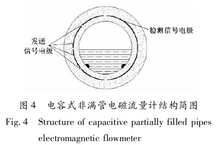 ②電容式非滿管煤漿流量計(jì)h。電容式非滿管煤漿流量計(jì)結(jié)構(gòu)簡圖如圖4所示。、檢測(cè)信號(hào)電* 發(fā)送信號(hào)電