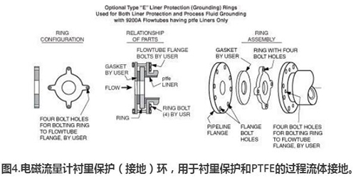 圖4.醋酸流量計(jì)襯里保護(hù)(接地)環(huán),用于襯里保護(hù)和PTFE的過(guò)程流體接地。
