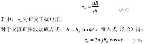 從上圖 2.5 中可以觀察到兩個(gè)電*、勵(lì)磁線圈、轉(zhuǎn)換器內(nèi)阻之間形成了一個(gè)閉合回路,將此回路稱之為初級(jí)繞組,從理論上進(jìn)行分析,磁力線 B 應(yīng)當(dāng)平行于勵(lì)磁線圈所產(chǎn)生的磁感應(yīng)線,但在實(shí)際的應(yīng)用過(guò)程中由于工藝差異,因此無(wú)法達(dá)到理想狀態(tài),會(huì)產(chǎn)生磁力線穿過(guò)勵(lì)磁線圈磁感應(yīng)線的情況,此時(shí)將會(huì)產(chǎn)生相應(yīng)的感應(yīng)電動(dòng)勢(shì),將此部分感應(yīng)電動(dòng)勢(shì)稱為變壓器效應(yīng)。此效應(yīng)同樣滿足于楞次定律,利用楞次定律進(jìn)行計(jì)算可得如下電動(dòng)勢(shì):