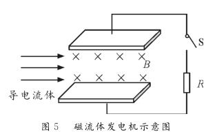 【例1】圖5為磁流體發(fā)電機示意圖。設兩金屬板間的距離為d,兩*板間勻強磁場的磁感應強度為B。等離子體垂直進入磁場的速度為v,單個離子所帶的電荷量為q。離子通道(即兩*板內(nèi)所圍成的空間)的等效電阻為r,負載電阻為R。則下列判斷正確的是( ?。?br/>A。該發(fā)電機的電動勢E=Bdv