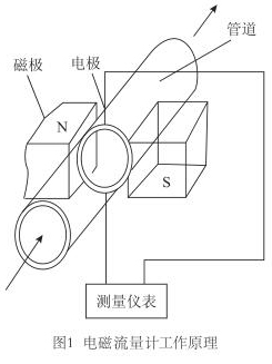 廢水流量表是應(yīng)用電磁感應(yīng)定律,即:導(dǎo)電體在磁場(chǎng)中運(yùn)動(dòng)產(chǎn)生感應(yīng)電動(dòng)勢(shì),而感應(yīng)電動(dòng)勢(shì)又和流量大小成正比,通過測(cè)電動(dòng)勢(shì)來反映管道流量的原理而制成的,用來測(cè)量導(dǎo)電流體的體積流量(見圖1)。工業(yè)上多用以測(cè)量水、礦漿、各種酸、堿、鹽等腐蝕液體等介質(zhì)的流量。