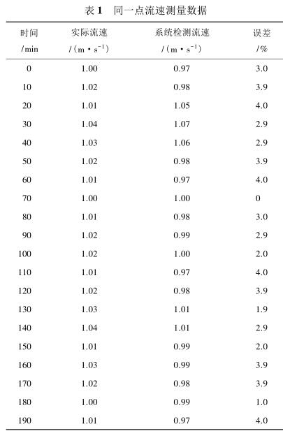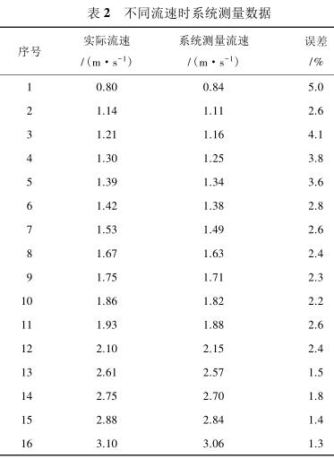 由表 2 測量數(shù)據(jù)可知,系統(tǒng)在測量低流速液體時(流速小于 1 m/s)誤差較大,達到 5%,當待測液體的流速增大時(大于 1.4 m/s),誤差逐漸減小,基本維持在 3%以內(nèi)。由此可見系統(tǒng)具有較高的檢測精度,尤其是當管道中的液體流速較高時,系統(tǒng)的檢測誤差不超過 3%,達到了設(shè)計預(yù)期。