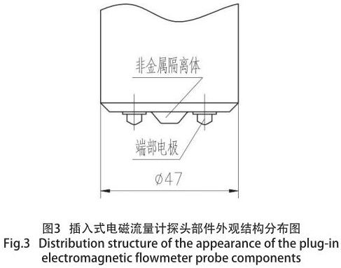 通過大量的試驗(yàn),對探頭端部外型結(jié)構(gòu)亦采用特殊設(shè)計(jì),從而消除兩個(gè)電*之間的擾流現(xiàn)象,同時(shí)亦消除因通電產(chǎn)生磁場,導(dǎo)致兩個(gè)電*吸附介質(zhì)中的鐵屑而影響測量精度和死區(qū)效應(yīng),增強(qiáng)了輸出信號的穩(wěn)定性,從而提高傳感器準(zhǔn)確度和抗干擾性。通過結(jié)構(gòu)的優(yōu)化設(shè)計(jì),使用壽命更長,鹽酸流量表探頭局部,如圖 3 所示。