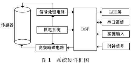高頻勵(lì)磁電鍍污水計(jì)量表由傳感器、高頻勵(lì)磁電路、信號(hào)處理電路等組成,其中高頻勵(lì)磁電路決定著傳感器磁場的強(qiáng)弱,勵(lì)磁電路的穩(wěn)定性以及精確性決定著系統(tǒng)檢測的準(zhǔn)確性以及穩(wěn)定性。DSP 系統(tǒng)控制勵(lì)磁電路激勵(lì)傳感器線圈,當(dāng)線圈中有導(dǎo)電液體流過時(shí),其切割磁感線并在傳感器兩端的線圈上產(chǎn)生感應(yīng)電動(dòng)勢,利用信號(hào)檢測電路監(jiān)測感應(yīng)電動(dòng)勢的大小,*后根據(jù)相應(yīng)關(guān)系計(jì)算出液體的流量,系統(tǒng)硬件框圖如圖 1 所示。