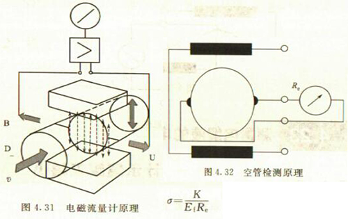 非滿管檢測(cè)也是基于電導(dǎo)率檢側(cè)的方法。在圖4.33所示的電磁流量傳感器中,增加了一個(gè)(或一對(duì))非滿管檢測(cè)電*。當(dāng)導(dǎo)管內(nèi)液體滿管時(shí),頂部電*與其他電*之間的電阻值很小;而當(dāng)存在非滿管情況時(shí),頂部電*與導(dǎo)電液體之間有氣體阻隔,所以電*電阻顯著增大,從而做出非滿管判斷。