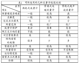 幾種可以進(jìn)行比較的流量計的性能特點,見表1。