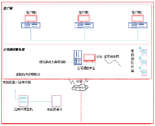 基本的工作原理:自來水電磁流量計輸出數(shù)據(jù)傳輸?shù)浆F(xiàn)場終端PLC,在DTU上主動撥上GPRS網(wǎng)絡(luò),與數(shù)據(jù)中心(DSC)實現(xiàn)TCP/IP協(xié)議進(jìn)行雙向通信,由DTU軟件和用戶設(shè)備通過RS-232/485實現(xiàn)透明可靠的數(shù)據(jù)傳輸,將數(shù)據(jù)傳輸?shù)奖焙W詠硭菊{(diào)度中心管理系統(tǒng)實行遠(yuǎn)程實時監(jiān)控。