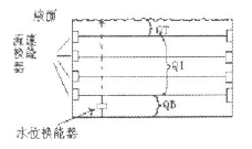 由(3)式可見,只要測出正逆向的傳播時間T1、T2就可以計算出水的流速,進而求得流量。但是根據(jù)(3)式求得的流速是超聲波傳播路徑上的線平均流速,由于在一個渠道的水流斷面上,各處的流速并不相同,因此僅用一個聲路計算流量將會產(chǎn)生很大的誤差。為提高測量精度,我們在明渠斷面的不同高度上設置了四路換能器下圖,構成多個測量聲路,從而測出水流斷面上的多層流速。同時還設一個水位換能器,這樣流量計中的計算機可以根據(jù)測得的流速和水位準確地計算出流量Q。為了及時了解流量計的運行情況和檢測數(shù)據(jù),通過RS232數(shù)據(jù)接口和RS485接口,將數(shù)據(jù)傳給“893”網(wǎng),供調(diào)度系統(tǒng)和相關部門使用。